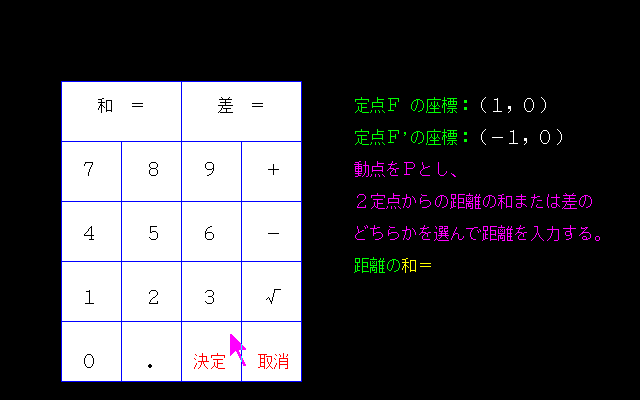 1-2. 2焦点と距離の和・差(KYOKU2.BAS)の条件入力