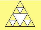 ひとつの正三角形の各辺の中点を結ぶと、下図のように縮小された正三角形が描かれます。